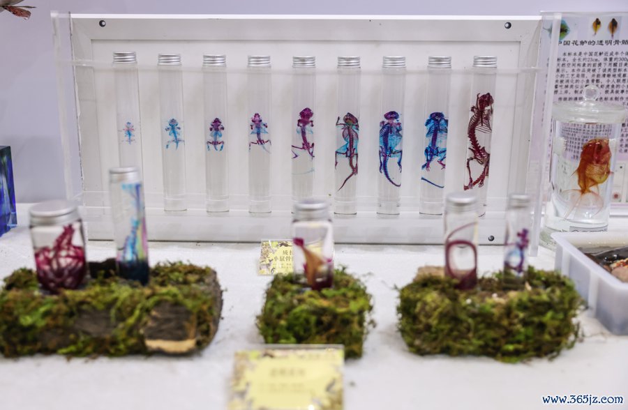 图为现场展出的参赛作品展示了小鼠骨骼发育全历程。